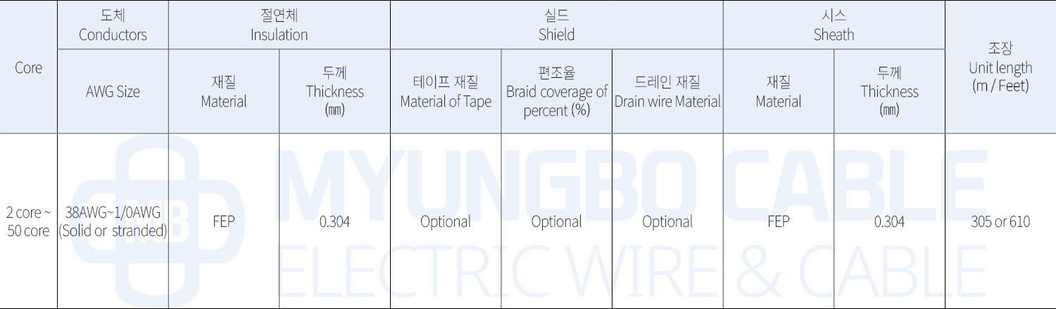 - 생산범위 (Available AWG): 38AWG ~ 1/0AWG