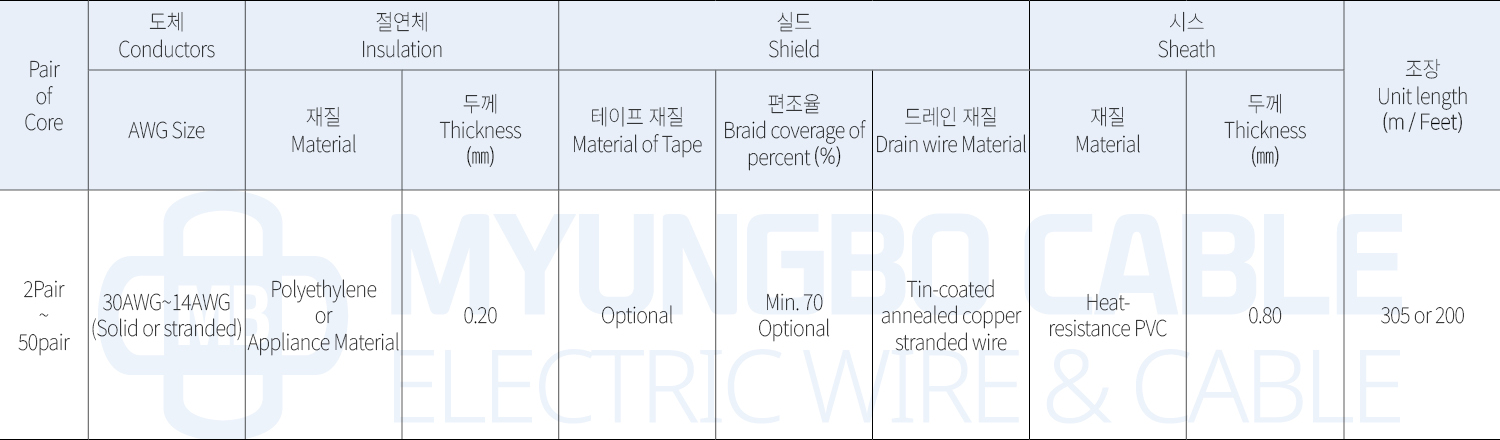 - 난연성 (Flammability): VW-1 / FT1 PASS