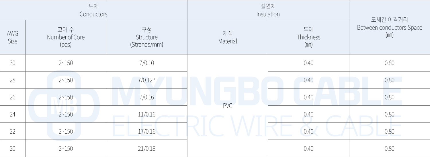 - 생산 범위 (Product Range): 36AWG ~20AWG