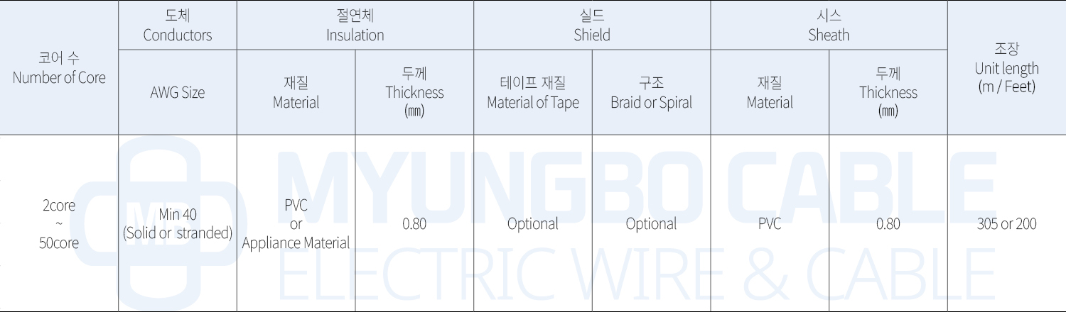 - 생산 범위 (Product Range): 40AWG MIN
