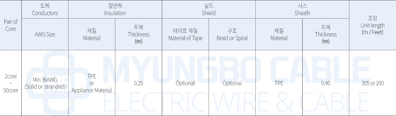 - 난연성 (Flammability): VW-1 / FT1 PASS